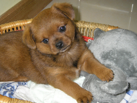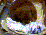 一個月大小奶狗的我,大部份時間都在睡覺,而且可以一睡2-3小時,叫也叫不醒,一覺醒來之後,尿尿便便活動玩耍半個小時之後,又累到自行回窩裡睡覺,一睡又是2-3小時。爸爸常笑我,是一顆充電時間長達3小時而只能使用半小時的山寨電池。