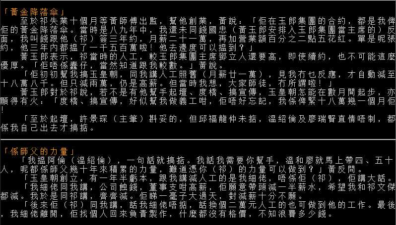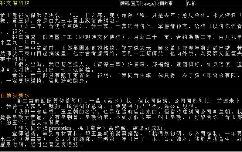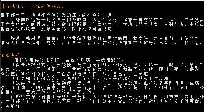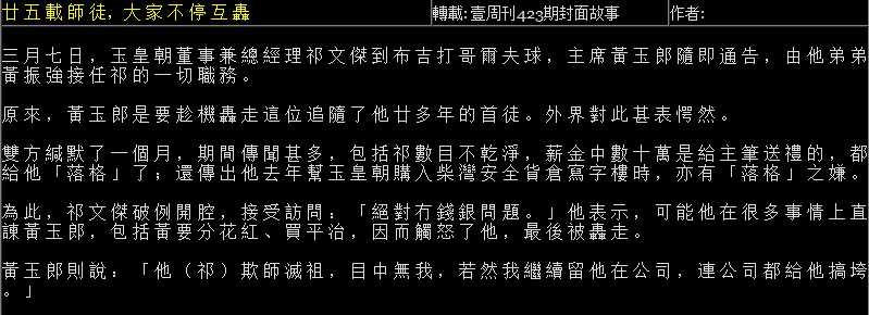 1992年黃玉郎因股災導致鋃鐺入獄期間,便是依賴祁文傑隻身在外打點籌備《玉皇朝》成立事宜,下圖為黃玉郎親身描述對於這大徒弟的感激之情。